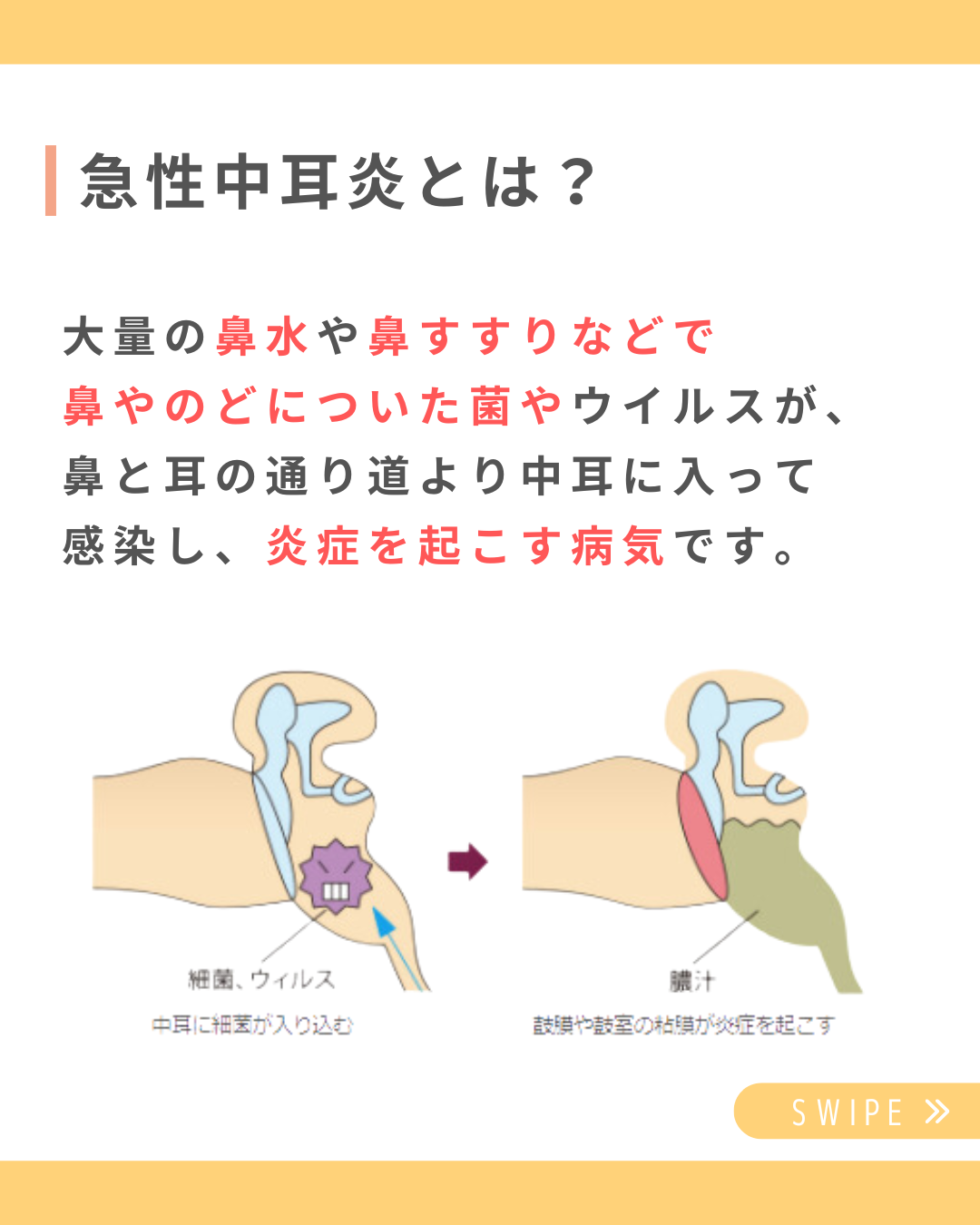 今日から学べる!医療の豆知識vol.10急性中耳炎①👂🏻👃🏻