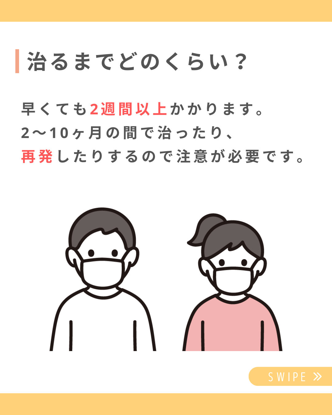 2~10ヶ月の間で治ったり、再発したりするので注意が必要です。