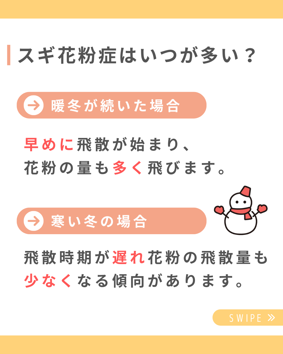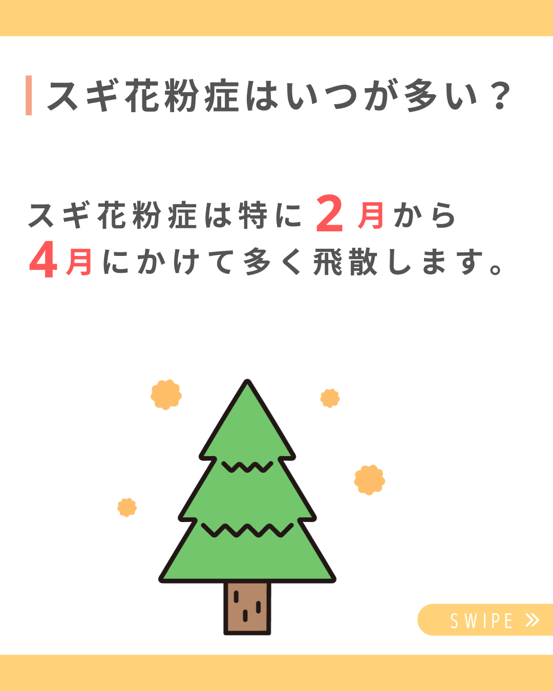 スギ花粉症は特に2月から4月にかけて多く飛散します。