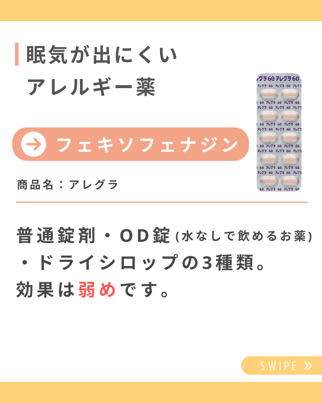 今日から学べる!医療の豆知識vol.21眠気が出にくいアレルギー薬4選💊