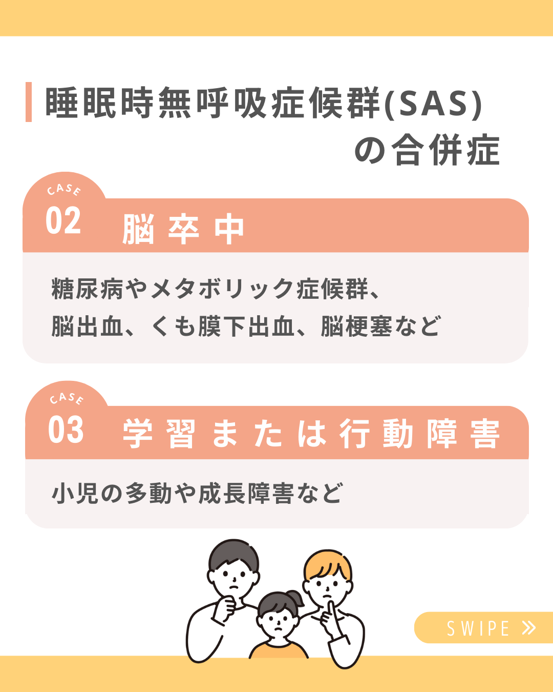 SASが原因となって下記のような合併症が生じる可能性があります。