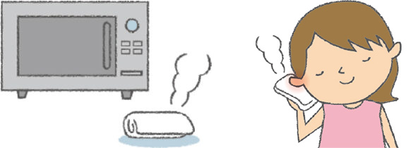 - 温めたタオルを、耳鳴りのするほうの耳に5〜10分間当てる。両方の耳に耳鳴りがある場合は、片方ずつ行う