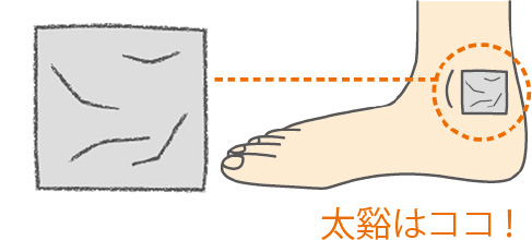 足の内くるぶしとアキレス腱の間のくぼんでいるところにある ※一日じゅう貼っていてもいい。 日中に貼るとじゃまになる場合は、就寝時だけでもかまわない
