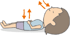 呼吸の練習(カメのポーズの前に行う) あおむけになり、左右の手のひらを重ねておなかに置く。おなかを膨らませながら鼻から息を吸い、おなかをへこませながら鼻か口から息を吐く呼吸を、2〜3回ゆっくり行なう