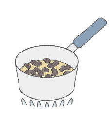 ❷ 豆を漬けた水ごと火にかけて、沸騰したら弱火にし、水が半分になるまで煮る