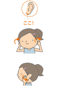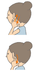 ❶ 耳のつけ根を軽くつまみ、後ろに5回クルクルと回す